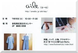 2008.06.01 きたる 7月15日(火) 安佐南区民文化センター3F美術工芸室 AM10:00~11:30 にて ![]() aile(エール)さんの1DAYショップに参加させていただく事になりました。 数は少ないですが 是非多くの方に お越し頂き 手にとってみて頂ければと 思いますので 宜しくお願い致します。 aileさんの作品等は こちらのブログにて随時ご紹介されております。 素敵な作品を作られておりますので 楽しみです。 感想等ございましたら、お気軽にお問い合わせ下さい。 |