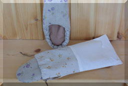 ポケットには小花とベージュチェックを使用してみました。